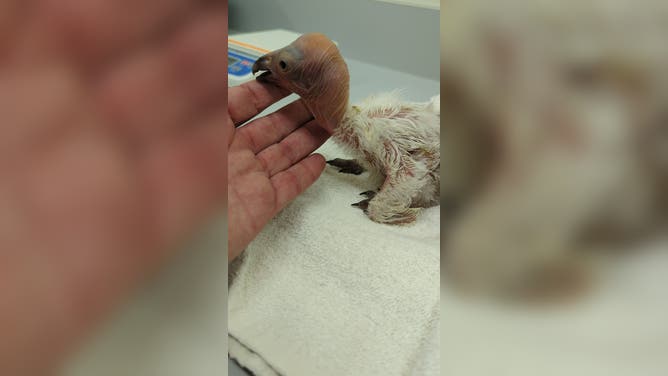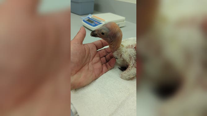 Looking at the fuzzy baby, it may be hard to believe that it will grow to be the largest land bird in North America, according to the zoo. Adults stand up to three feet high and the wingspan measures 9 1/2 feet.