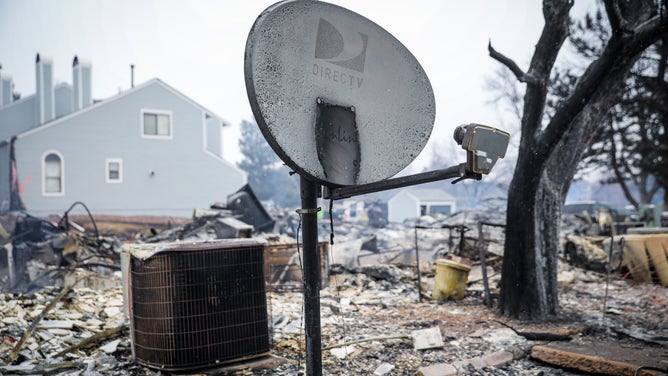 Image 42 of 93LOUISVILLE, CO - DECEMBER 31: A satellite dish stands nears the remains of the Wildflower Condos in the aftermath of the Marshall Fire on December 31, 2021 in Louisville, Colorado. The fast moving wind driven fire that erupted Thursday in multiple spots around Boulder County forced some 30,000 people out of their residences and may have destroyed as many as 1,000 homes. (Photo by Marc Piscotty/Getty Images) ( )