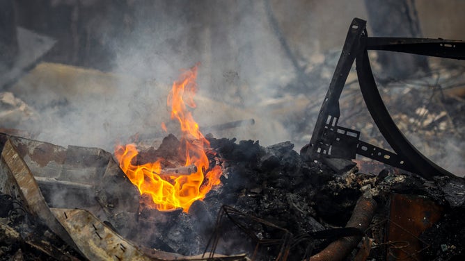 Image 44 of 93LOUISVILLE, CO - DECEMBER 31: One of many hot spots continues to burn at the Wildflower Condos in the aftermath of the Marshall Fire on December 31, 2021 in Louisville, Colorado. The fast moving wind driven fire that erupted Thursday in multiple spots around Boulder County forced some 30,000 people out of their residences and may have destroyed as many as 1,000 homes. (Photo by Marc Piscotty/Getty Images) ( )