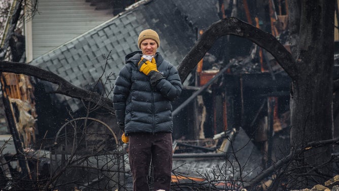 Image 45 of 93LOUISVILLE, CO - DECEMBER 31: Talis Ozols takes in what remains of his apartment at the Wildflower Condos on December 31, 2021 in the aftermath of the Marshall Fire. Ozols had lived there two years and was able to grab a few personal items before having to evacuate the day before. The fast moving wind driven fire that erupted Thursday in multiple spots around Boulder County forced some 30,000 people out of their residences and may have destroyed as many as 1,000 homes. (Photo by Marc Piscotty/Getty Images) ( )