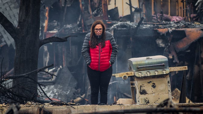 Image 54 of 93LOUISVILLE, CO - DECEMBER 31: Laurie Silver of Lafayette, Colorado takes in what remains of her cousin's condo in the aftermath of the Marshall Fire on December 31, 2021 in Louisville, Colorado. The fast moving wind driven fire that erupted Thursday in multiple spots around Boulder County forced some 30,000 people out of their residences and may have destroyed as many as 1,000 homes. (Photo by Marc Piscotty/Getty Images) ( )
