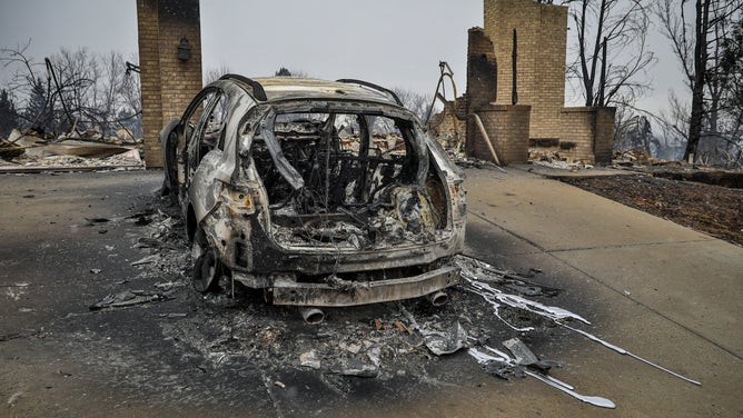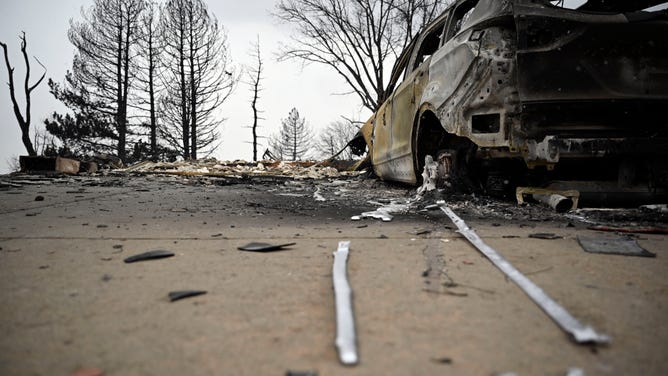 Image 52 of 93LOUISVILLE, CO - DECEMBER 31: Burnt out vehicles sit stand amidst the remains of a neighborhood in the aftermath of the Marshall Fire on December 31, 2021 in Louisville, Colorado. Most every house in the neighborhood had burnt down to the foundation. The fast moving wind driven fire that erupted Thursday in multiple spots around Boulder County forced some 30,000 people out of their residences and may have destroyed as many as 1,000 homes. (Photo by Marc Piscotty/Getty Images) ( )