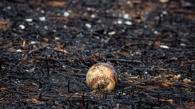 Image 58 of 93LOUISVILLE, CO - DECEMBER 31: A baseball sits in a field of burnt grass in the aftermath of the Marshall Fire on December 31, 2021 in Louisville, Colorado. The fast moving wind driven fire that erupted Thursday in multiple spots around Boulder County forced some 30,000 people out of their residences and may have destroyed as many as 1,000 homes. (Photo by Marc Piscotty/Getty Images) ( )