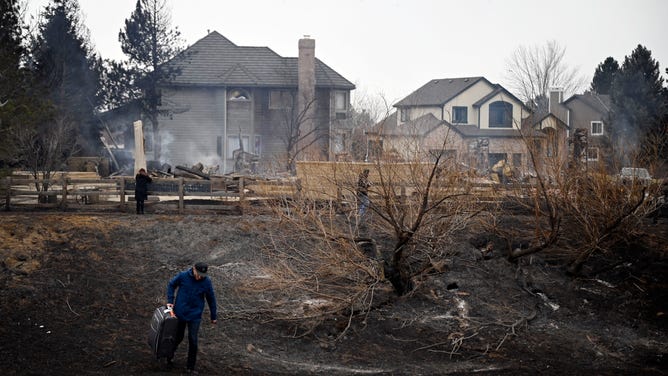Image 61 of 93LOUISVILLE, CO - DECEMBER 31: Scott Sherr carries a suitcase to his car after packing essential items from his home. He walks passed the charred remains of his friend's house on Mt. Evans Court in a Louisville subdivision to the south of Harper Lake on Friday, December 31, 2021. Sherr's house was spared but has no electricity or water so they chose to stay with family in Colorado Springs. (Photo by Photographer Name/MediaNews Group/The Denver Post via Getty Images) ( )