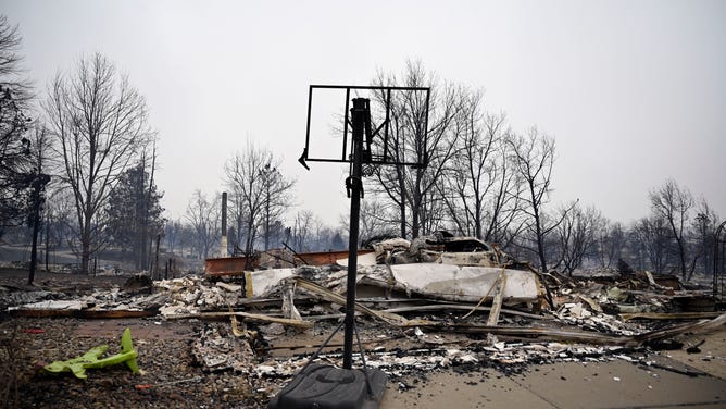 Image 63 of 93LOUISVILLE, CO - DECEMBER 31: A basketball hoop remains standing while burned in the driveway of a home devastated by the Marshall fire in a Louisville subdivision to the south of Harper Lake on Friday, December 31, 2021. (Photo by Photographer Name/MediaNews Group/The Denver Post via Getty Images) ( )