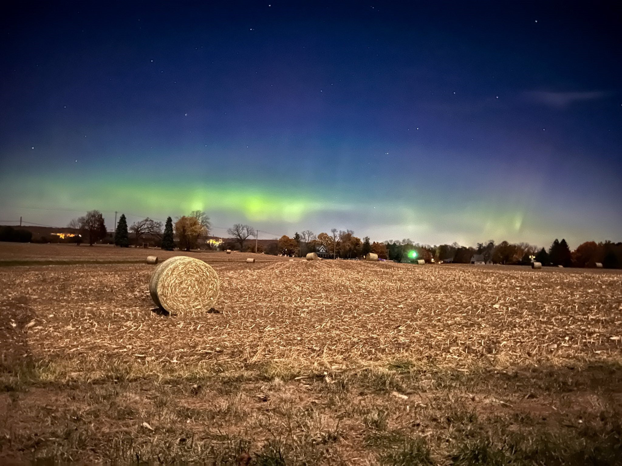 Northern lights dazzle over Lake Geneva, Wisconsin just after midnight on Nov. 6, 2025.
