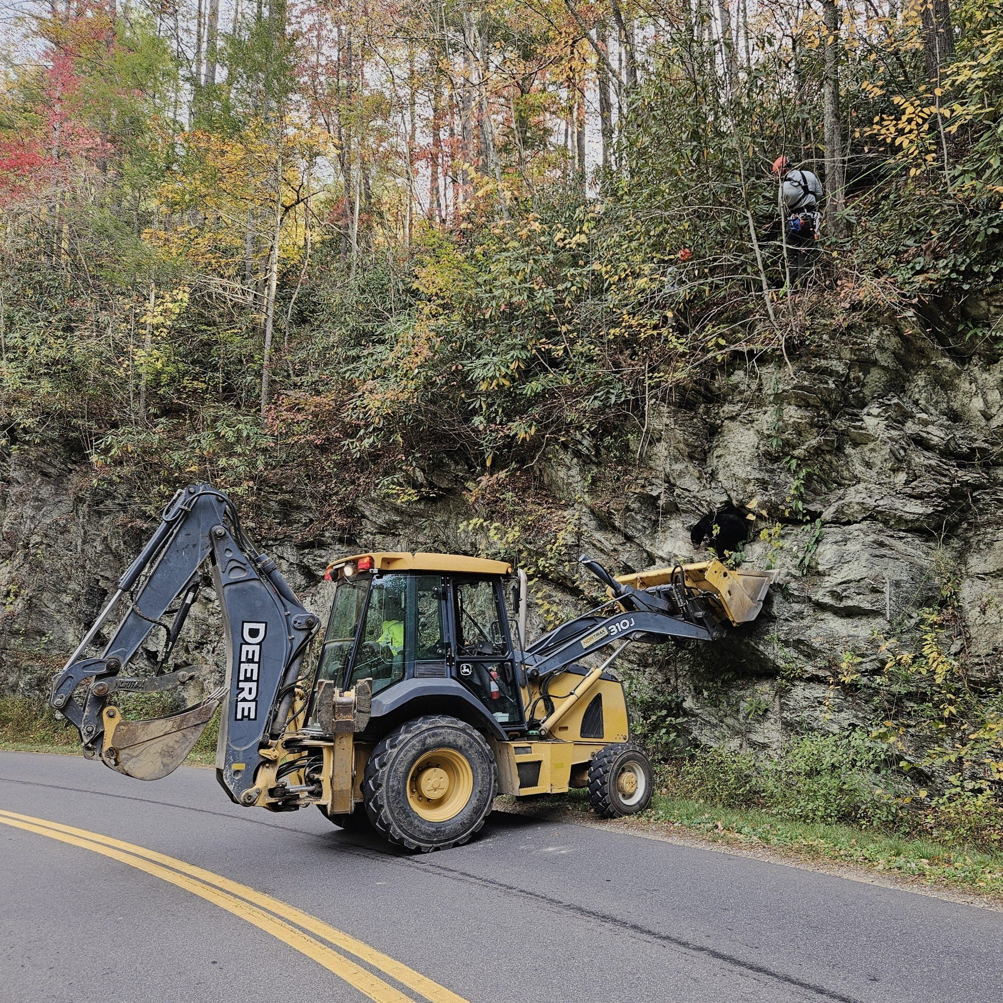 GREAT SMOKY MOUNTAINS NATIONAL PARK, Tenn.– A young black bear was rescued from a steep bank in Great Smoky Mountains National Park in October after onlookers formed a "bear jam."