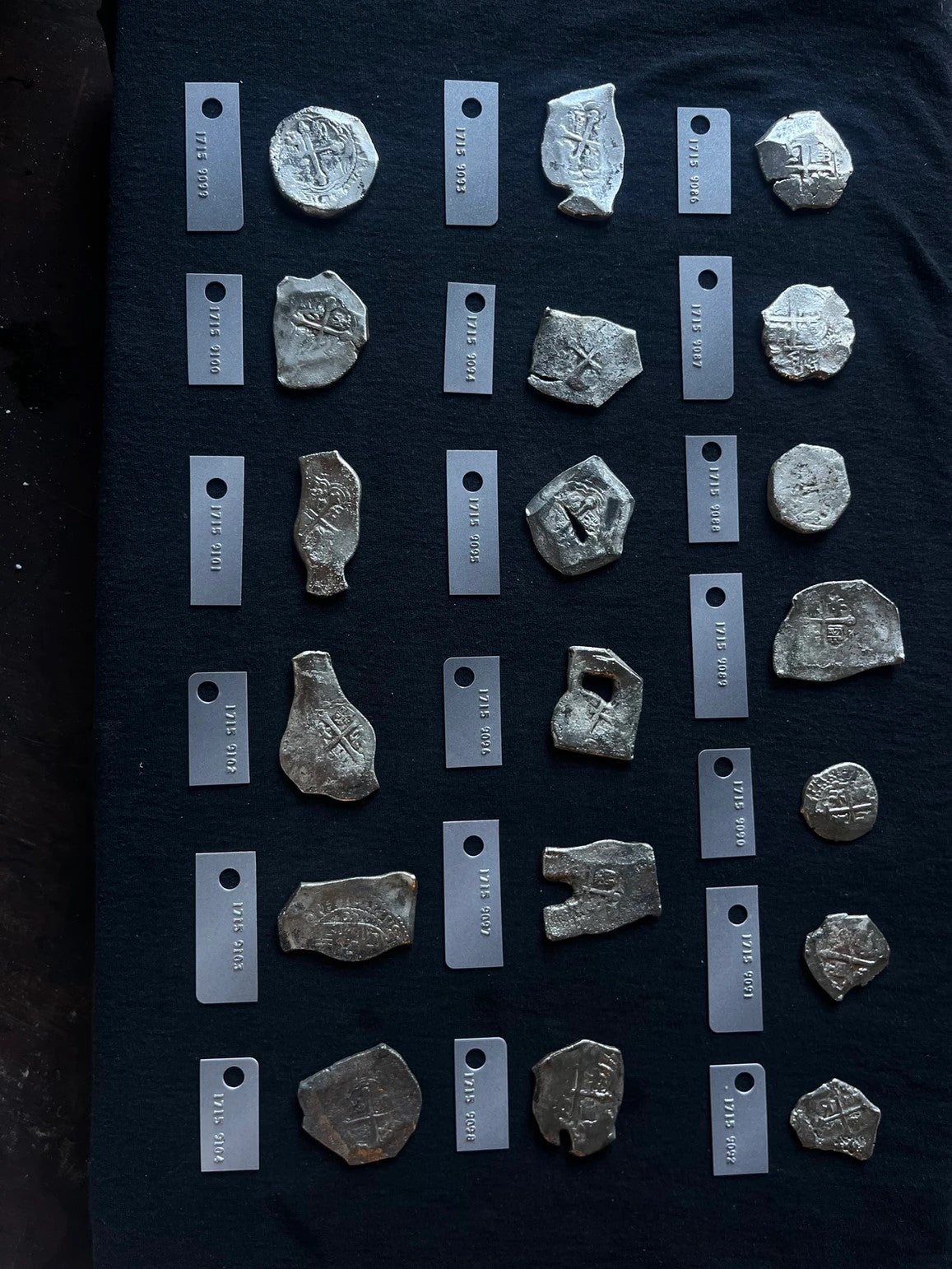 The coins found from the 1715 Treasure Fleet shipwreck in summer 2025.
