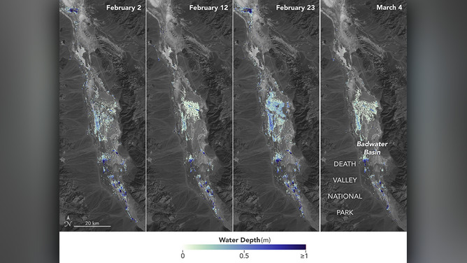 NASA used the U.S.-French Surface Water and Ocean Topography satellite to measure the depth of the ephemeral lake. Over six weeks, from Feb. 2 to March 4, the water ranged from 3 feet to 1.5 feet deep. Analysts used the satellite to measure the elevation of the water's surface and combined it with U.S. Geological Survey data about the basin.