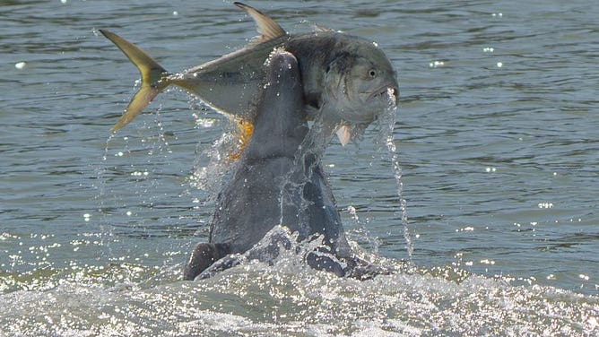 They said the dolphin was tossing around an 8- to 10-pound jack. This happened during one of the company's afternoon tours.