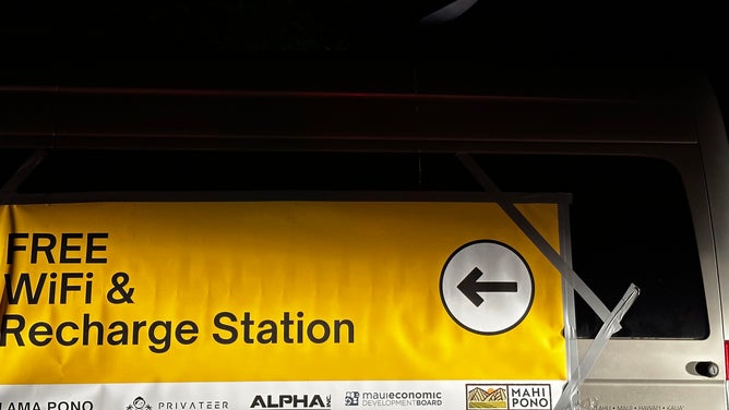 A charging and WiFi station in West Maui. Maui companies have teamed up to offer the stations for residents for as long as necessary. (Image credit: Alex Fielding/Privateer)