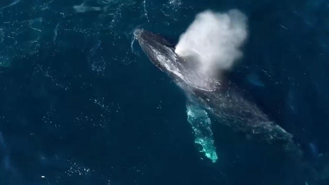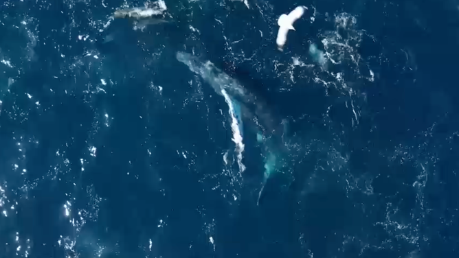 Drone captures humpback whales feeding off California coast