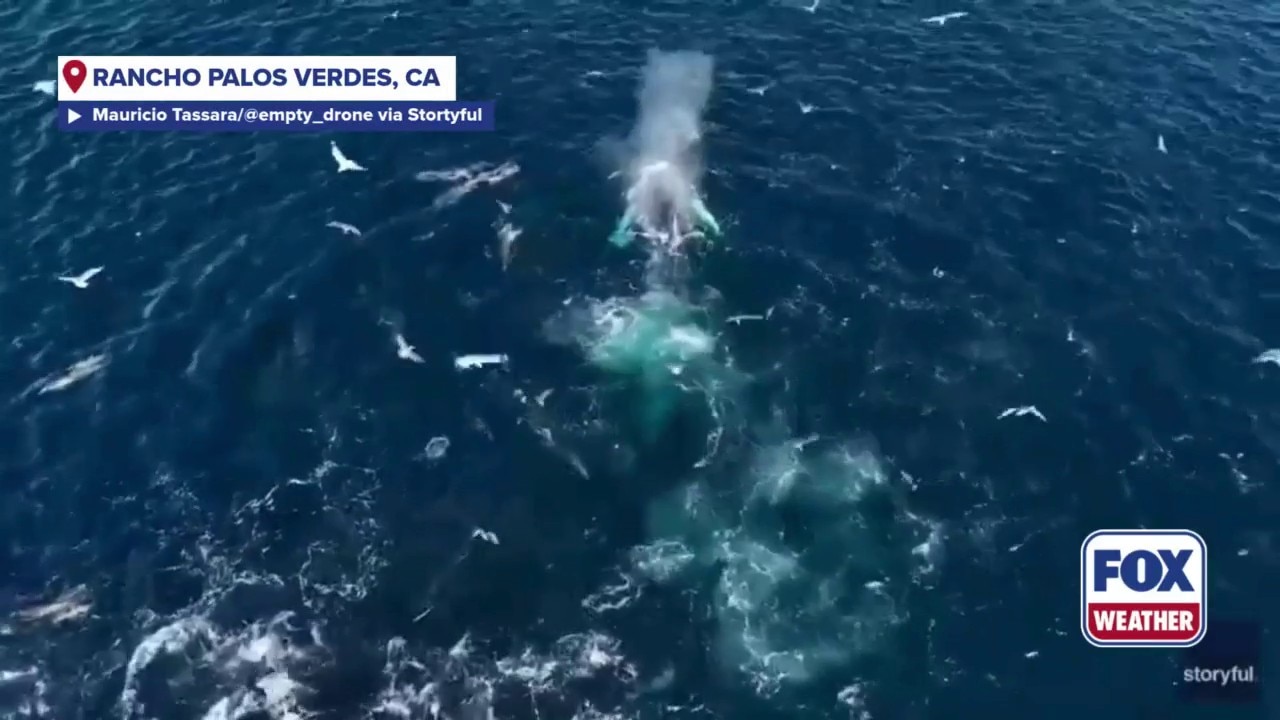 RANCHO PALOS VERDES, Calif. - A pod of whales was recently spotted off the California coast enjoying some dinner.