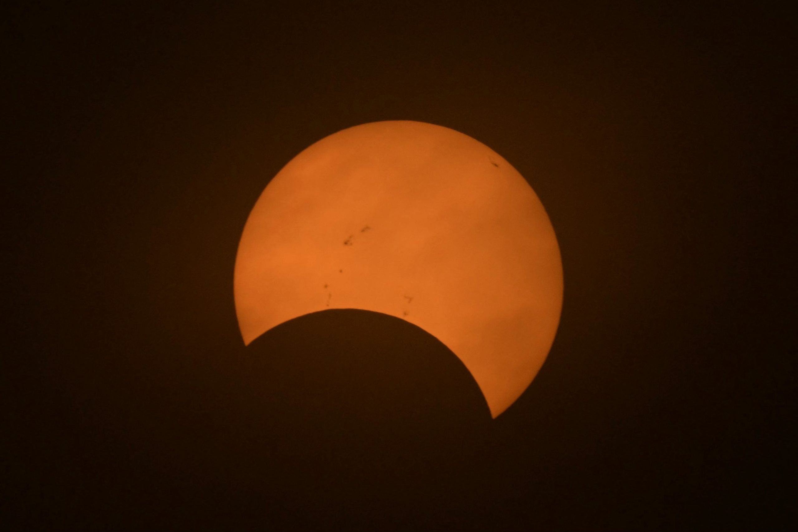 TOPSHOT — Partial view of the annular solar eclipse in Puerto San Julian, Santa Cruz province, Argentina, taken on October 2, 2024