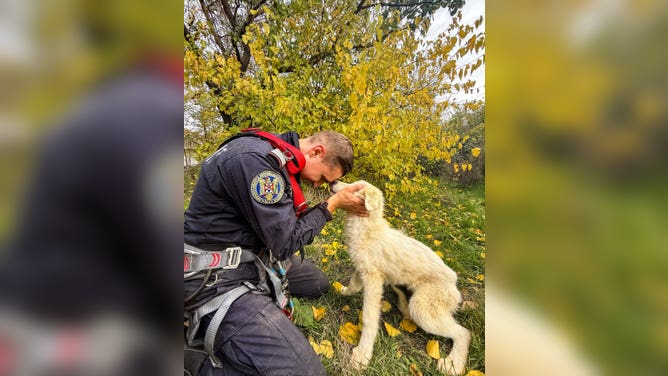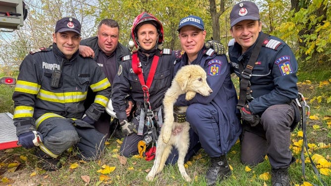 A young dog was rescued on Nov. 3 in Valea Nucarilor, Romania, after falling into an abandoned well.
