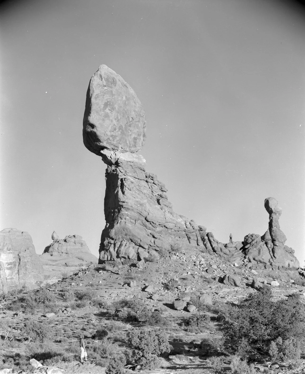 Balanced Rock and its smaller sibling photographed to the right, Chip Off The Old Block that collapsed in February 1976.
