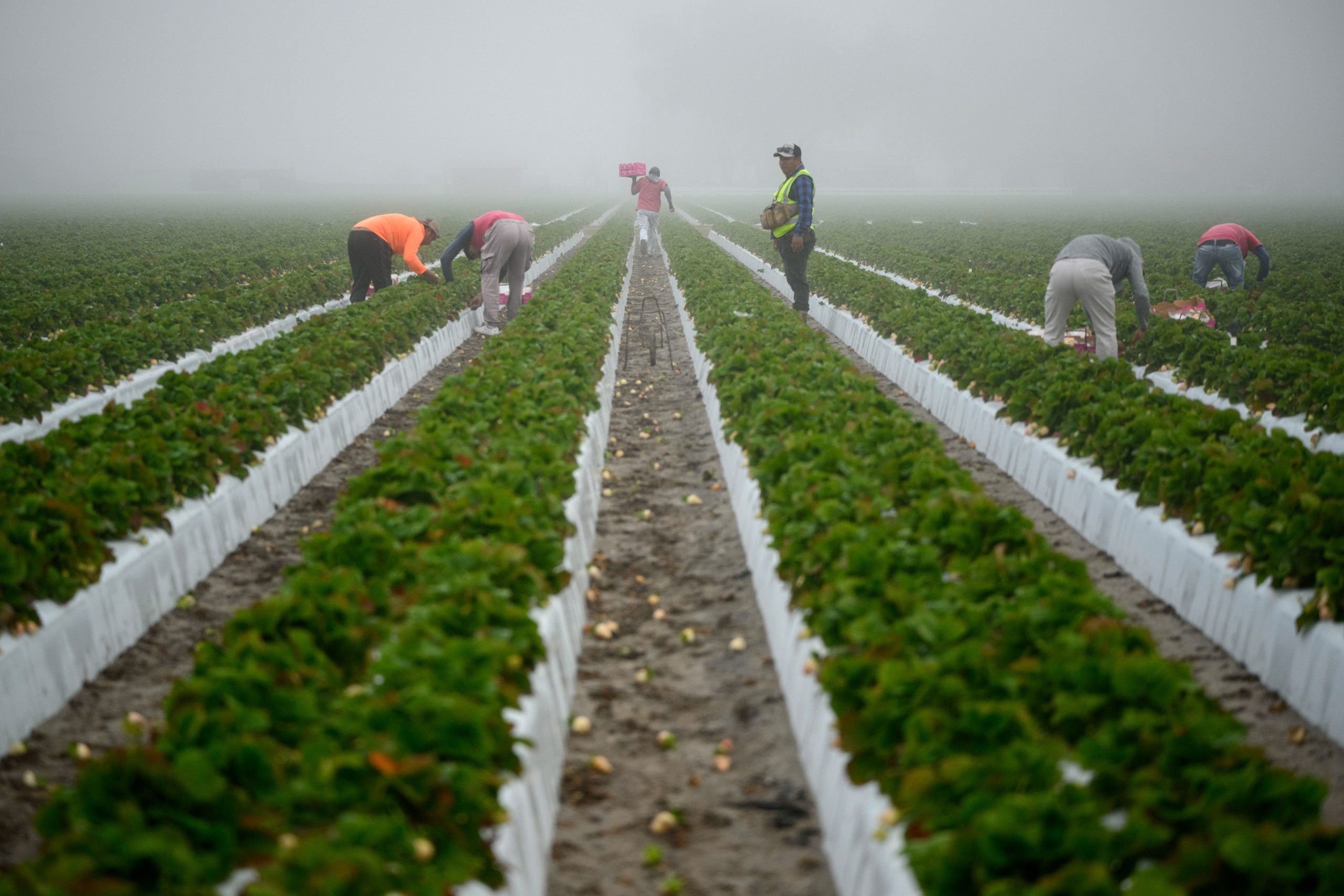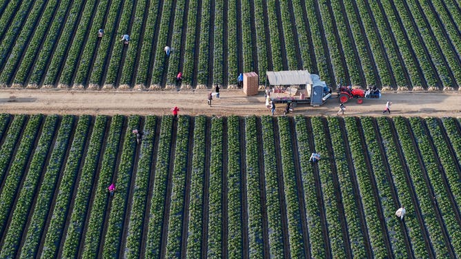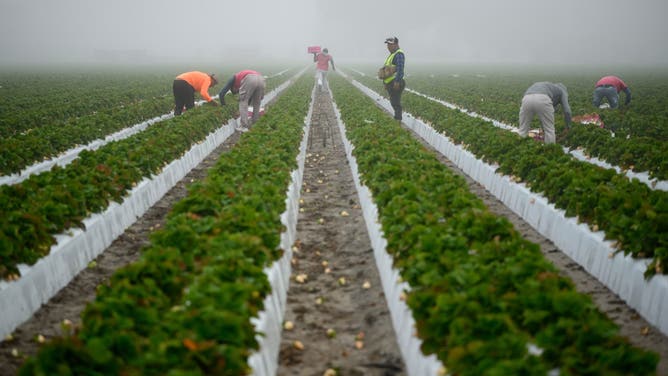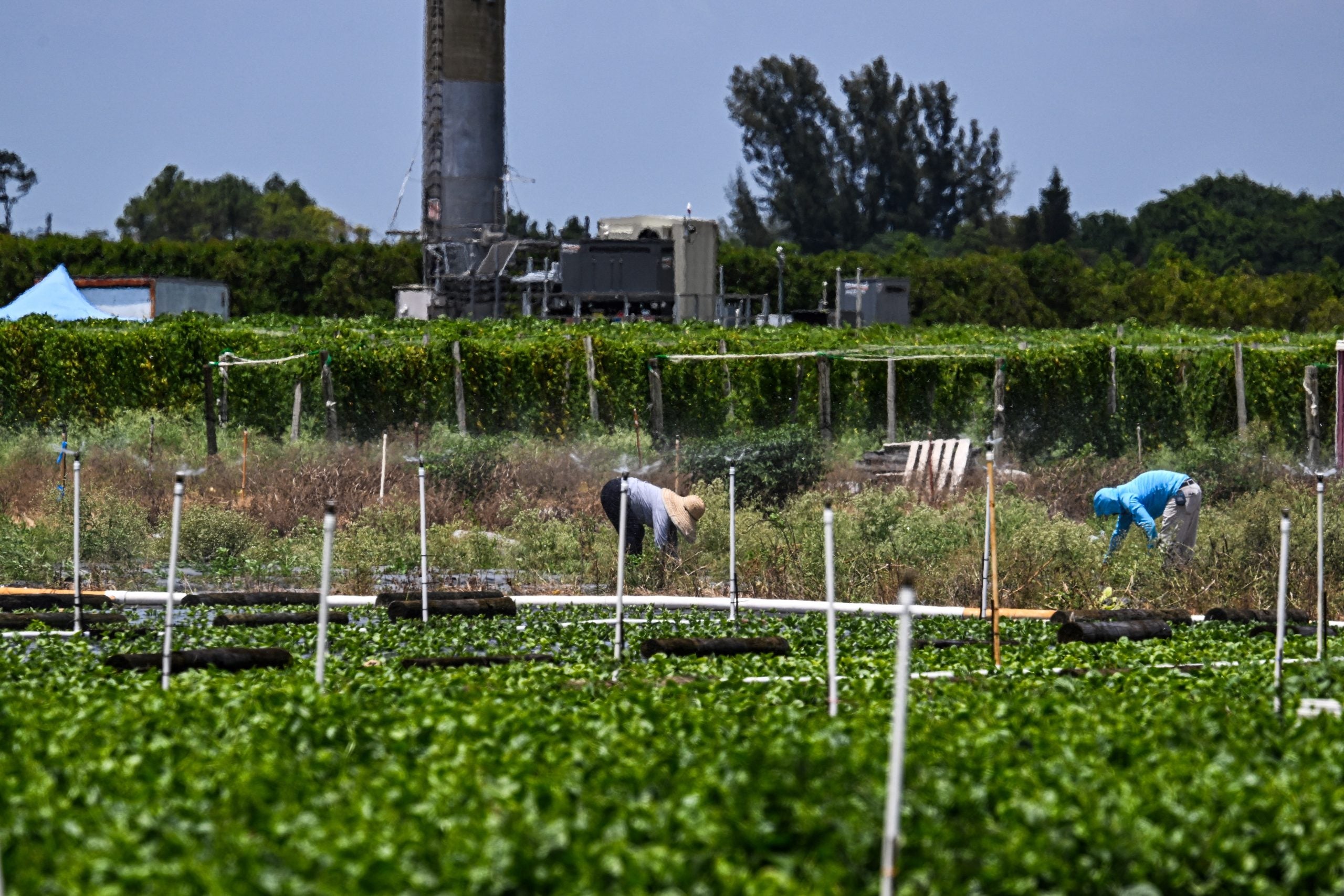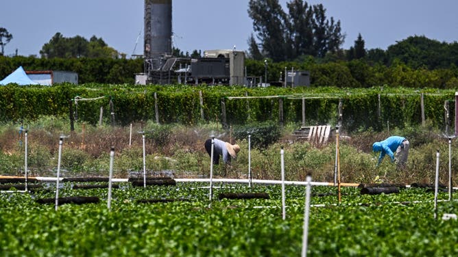 Farmers work on a farm in Homestead, Florida, on April 25, 2025.