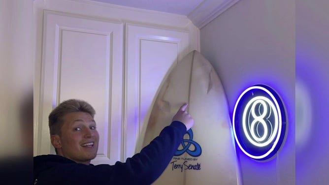 "My mom bought me that board three years ago, and I've surfed with that board in Mexico. I've surfed with that board all up and down the coast. But he made that board strong and that board saved my life."