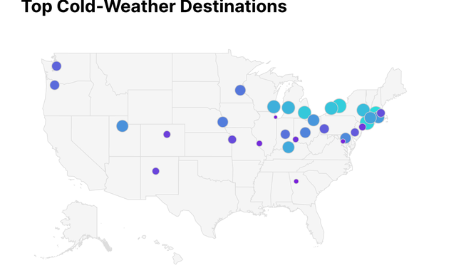 Love the winter? Find out the top cold weather holiday destinations to visit this holiday season across the US