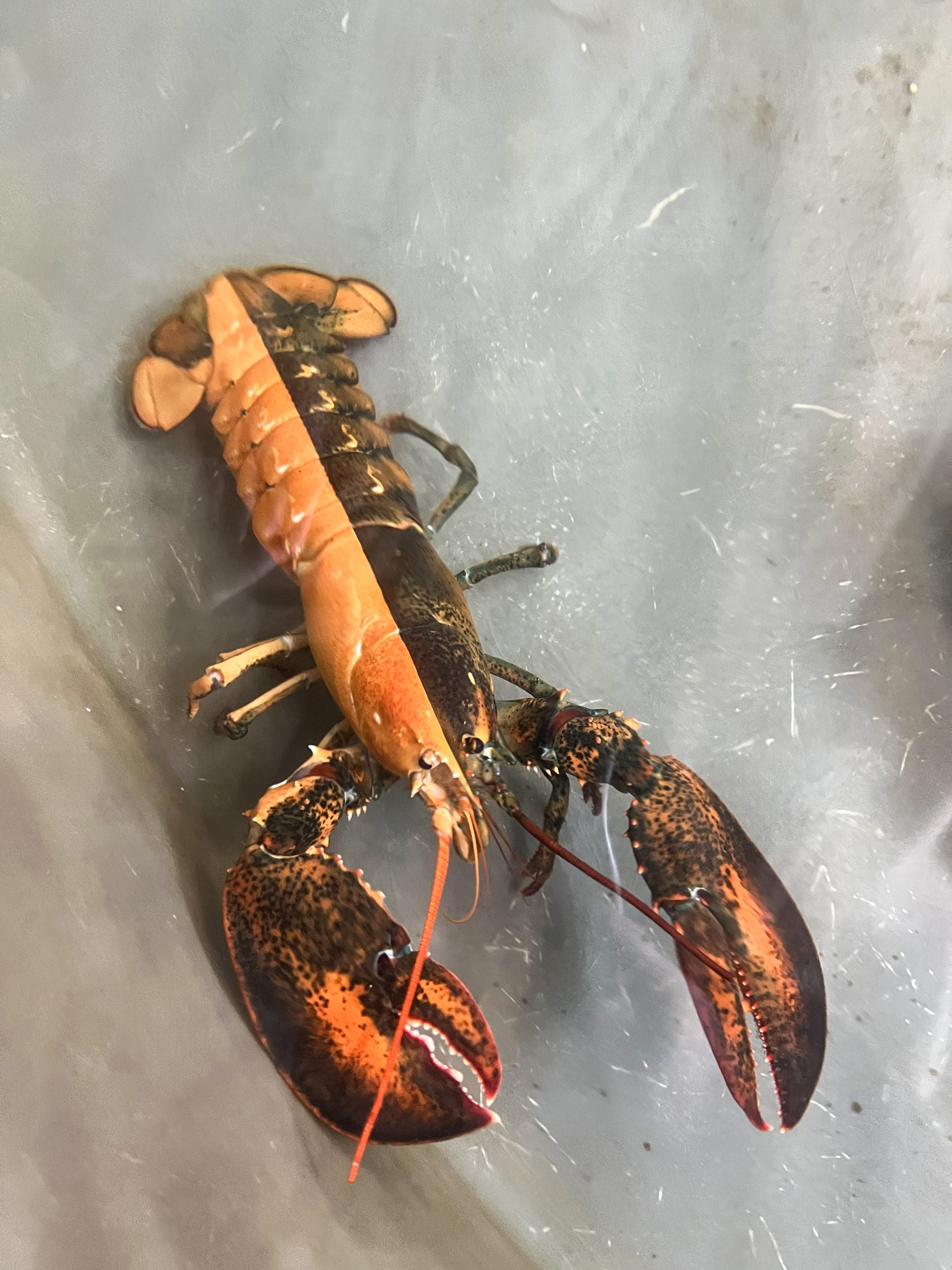Dever said the lobster is a bicolor or a split lobster, meaning she shows two different coloration on her shell.