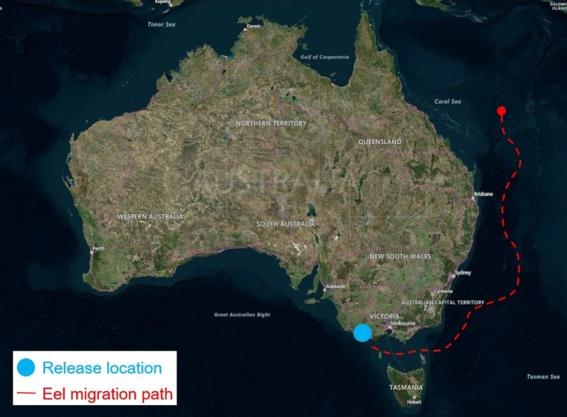 According to a 2015 study by the Arthur Rylah Institute for Environmental Research, migrating eels can travel more than 1,800 miles over several months along Austalia's coast to reach the Coral Sea.