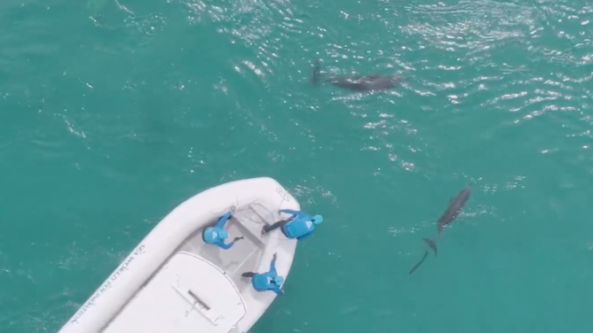 A daring video shared by the Sea World Foundation, Australia showed a group of marine conservations leaping from a boat to free a bottlenose dolphin calf entangled in a fishing line.