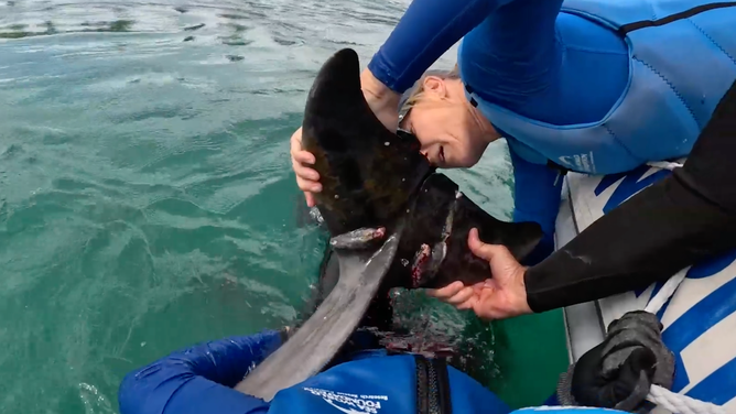 WATCH: Heroic rescuers tackle dolphin calf tangled in fishing line