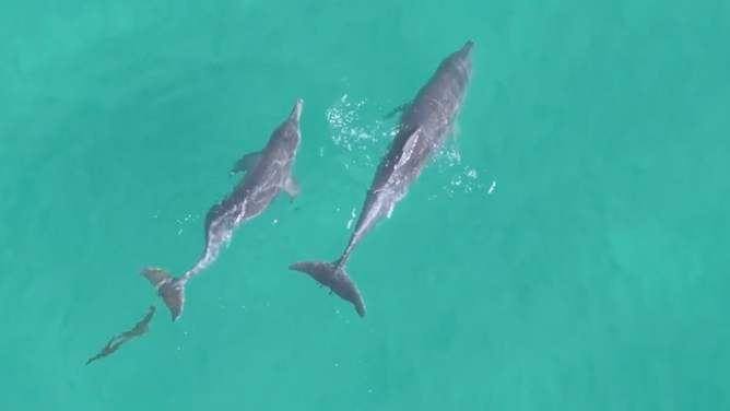 FORSTER, Australia - A video shared by the Sea World Foundation in Australia showed a group of marine conservations leaping from a boat to free a bottlenose dolphin calf that had become entangled in a fishing line.