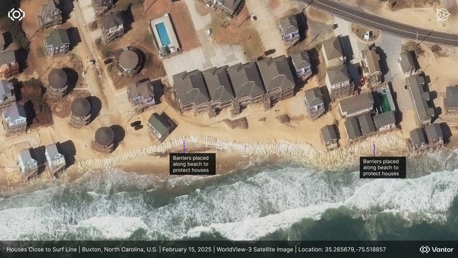 Barriers were placed along the shoreline after 16 houses collapsed in Buxton, N.C. due to beach erosion.