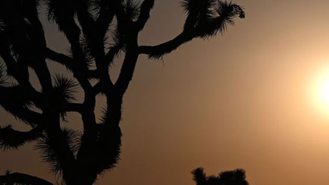 The sun sets behind Joshua Trees in Lancaster, California where temperatures reached 107 degrees Fahrenheit (41.6 degrees Celsius) today, July 12, 2021. - Wildfires were burning across more than one million acres of the western United States and Canada on Monday, as scorching temperatures held their grip on areas reeling from a brutal weekend heat wave. (Photo by Robyn Beck / AFP) (Photo by ROBYN BECK/AFP via Getty Images)