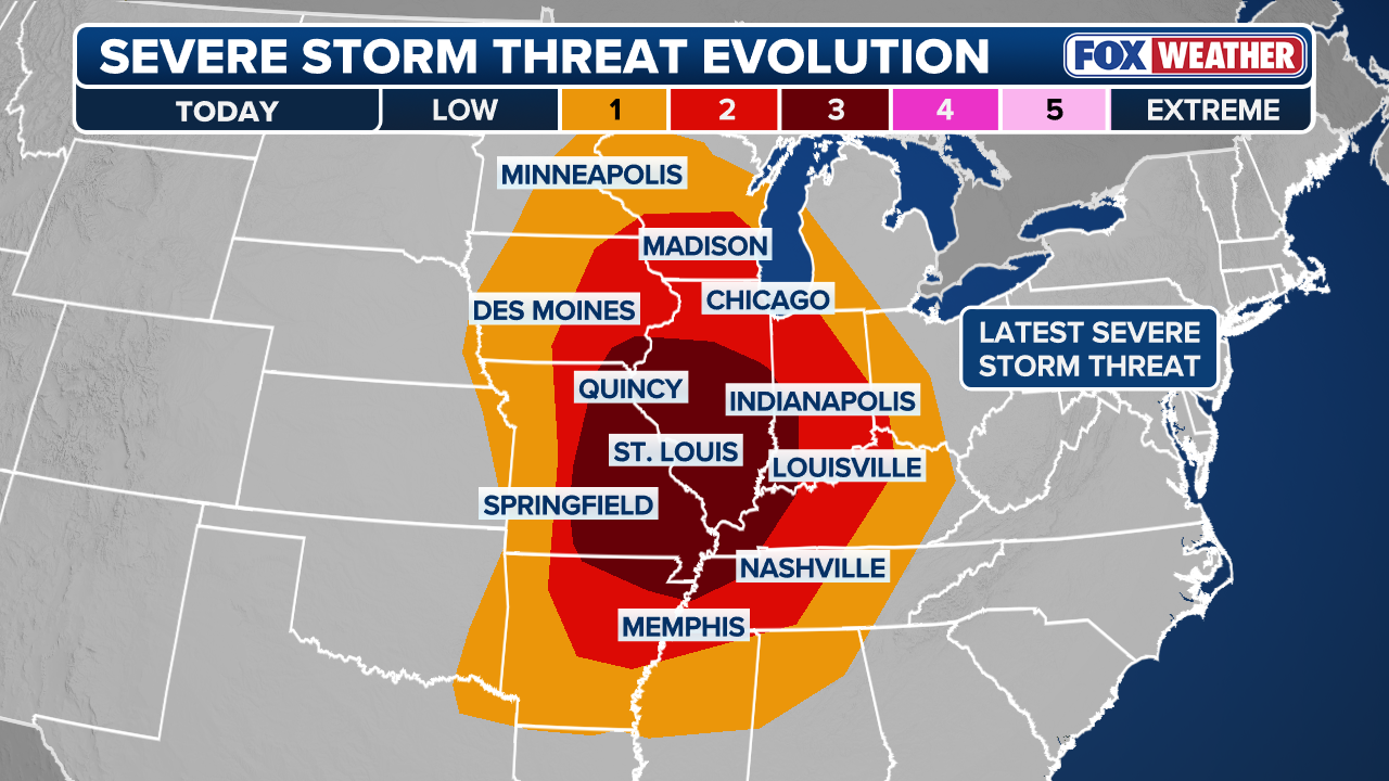 The SPC has issued a Level 3 out of 5 risk of severe thunderstorms across the region, including the St. Louis and Paducah, Kentucky metro areas.