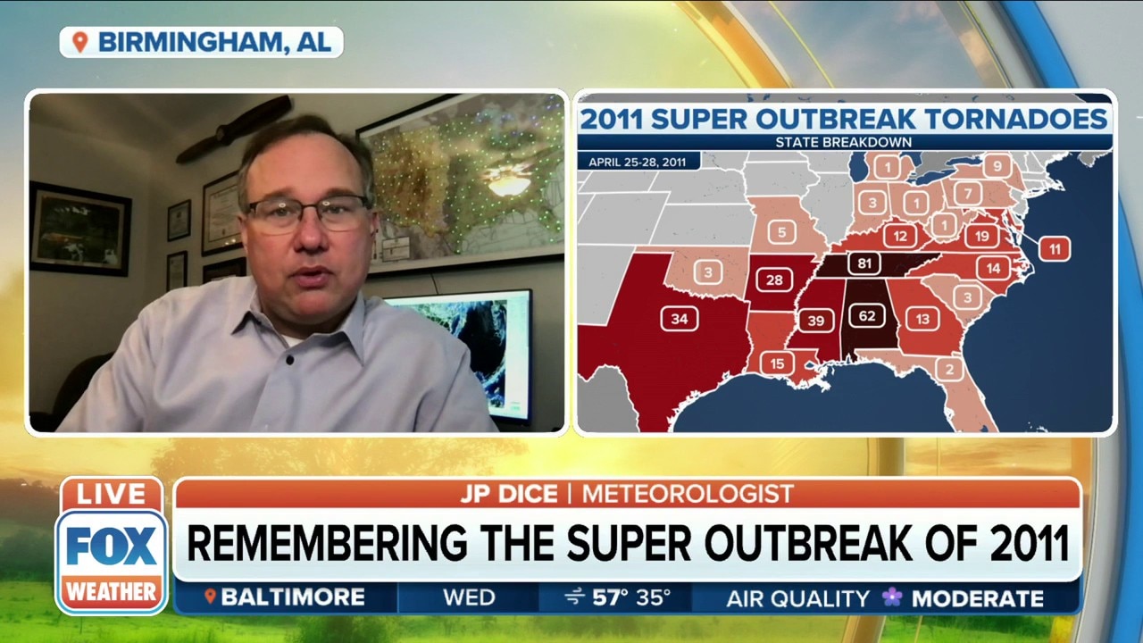 Meteorologist JP Dice, who served as the chief meteorologist for FOX 6 in Birmingham during the historic event, recalled the first scenes of tornadoes forming that morning.