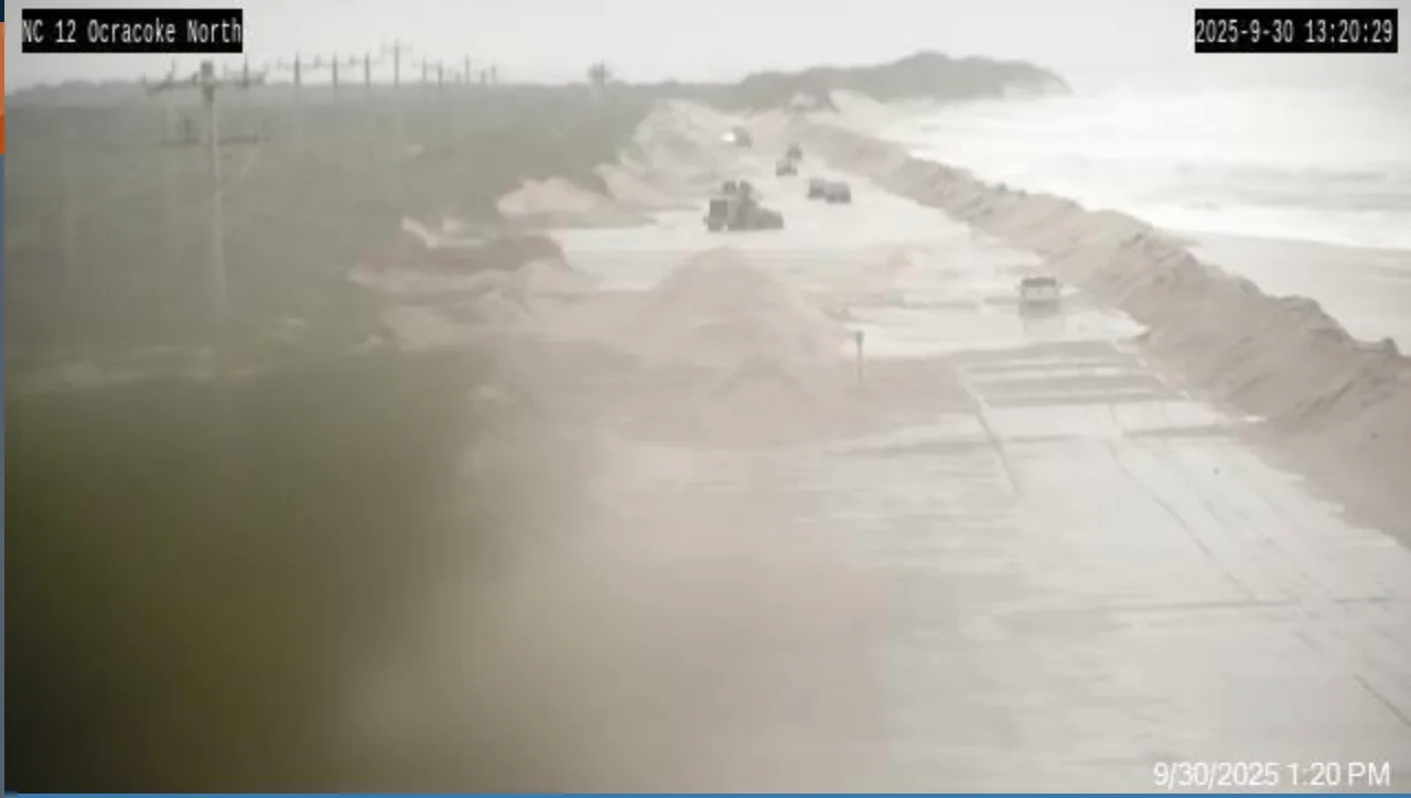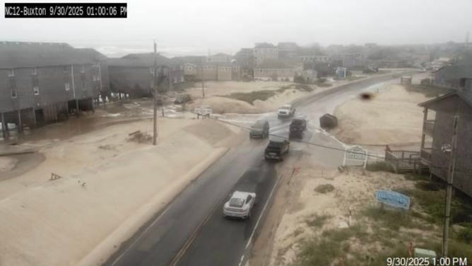 Highway 12 floods in Buxton, N.C. on Sept. 30, 2025