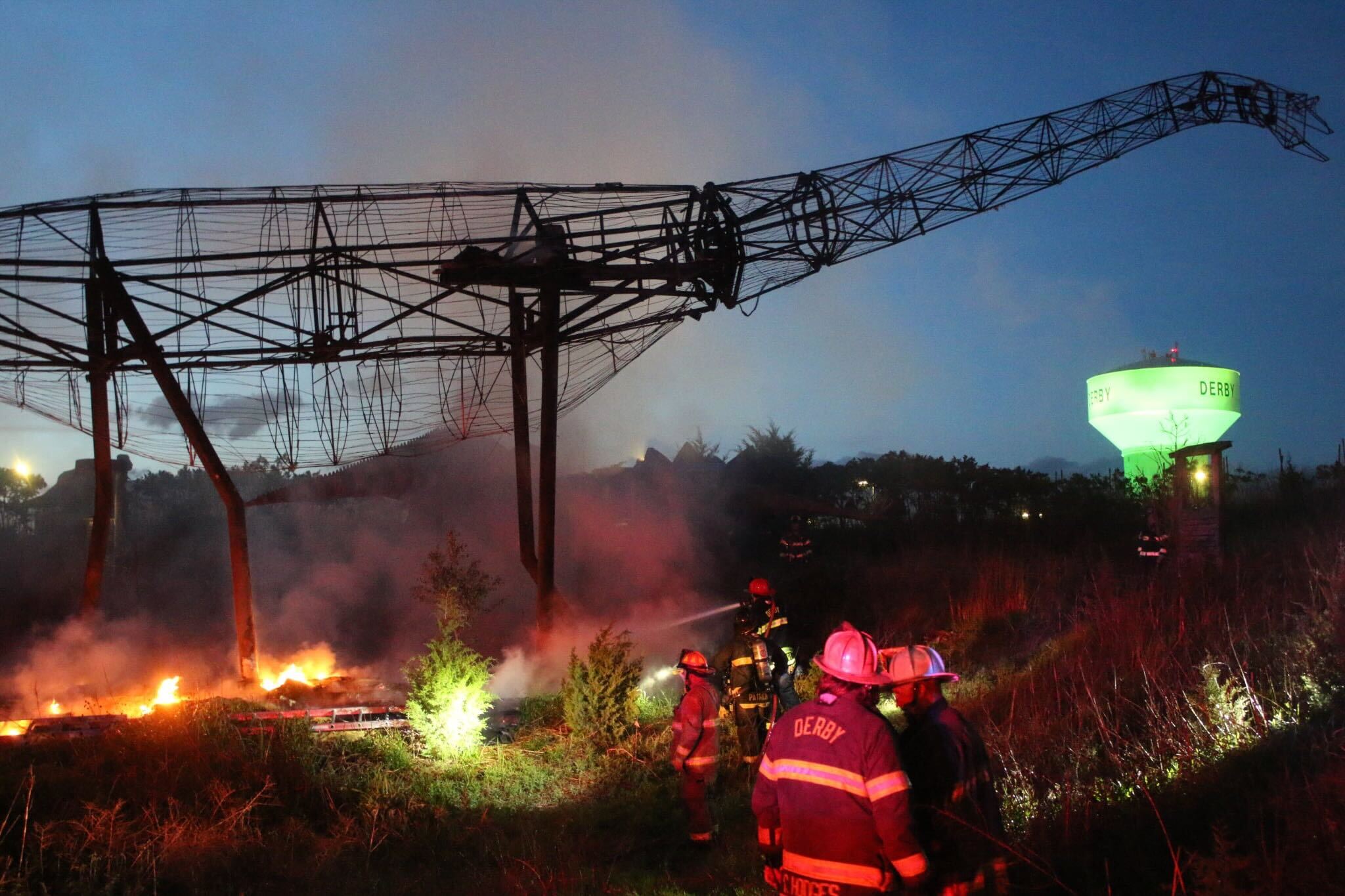 A roughly 100-foot, nearly 60-ton dinosaur is reduced to its bare skeletal frame after a lightning strike ignited the structure in flames at Field Station: Dinosaurs in Derby, Kansas, Saturday night. Crews were able to extinguish the fire before it spread, "sparing an extinction-level event."