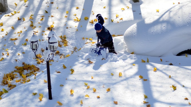 BUFFALO, NY - NOVEMBER 20: Norbert Schnorr attempts to remove some of the five feet of snow from a driveway on November 20, 2014 in the suburb of Lakeview, Buffalo, New York. The record setting Lake effect snowstorm dumped up to six feet of snow in less than 24 hours closing a one hundred mile section of The New York State Thruway as well as other major roads around Buffalo. Seven deaths have already been attributed to the storm and a second round beginning late Wednesday evening will bring up to three more feet of snow overnight and into Thursday. (Photo by John Normile/Getty Images)