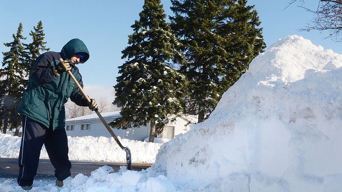 BUFFALO, NY, UNITED STATES - NOVEMBER 21: A resident works to clear snow on a roadside on November 21, 2014 in Buffalo, New York as the death toll attributed to Buffalo snow rises to 14. A brutal blast of Arctic air triggered a lake-effect storm and snow in the states of New York, Ohio, Michigan, Wisconsin and Pennsylvania. (Photo by Patrick McPartland/Anadolu Agency/Getty Images)