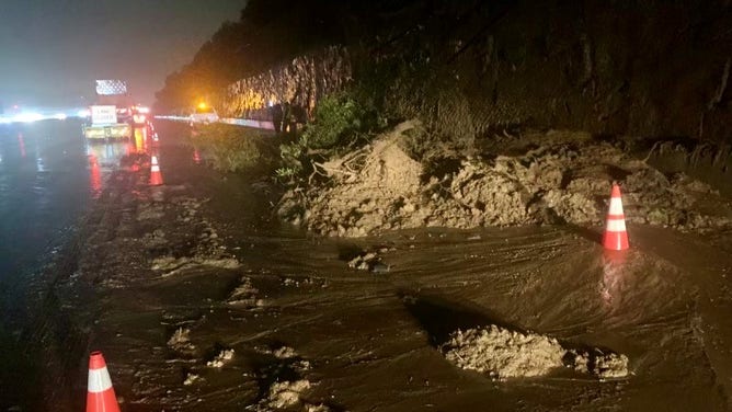 FOX Weather Correspondent Max Gorden is in Los Angeles where landslides have sent large boulders and debris rushing down the steep landscape of the Hollywood Hills as a deadly atmospheric river continues to slam Southern California with torrential rain and damaging wind gusts.