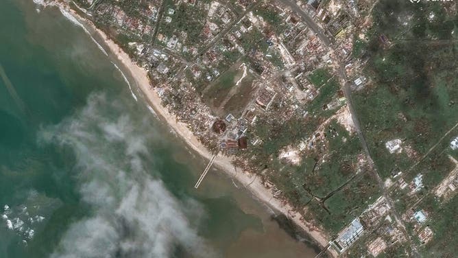 Satellite imagery captured before and after the arrival of the major Category 5 hurricane that packed winds of 185 mph and made landfall as the third-strongest Atlantic Basin hurricane on record.
