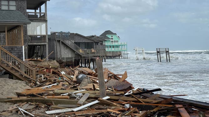 Crews begin cleaning up mountain of debris from collapsed beach homes along North Carolina's Outer Banks
