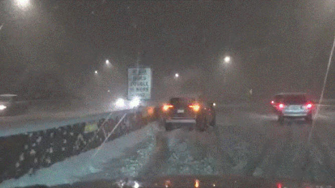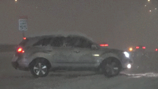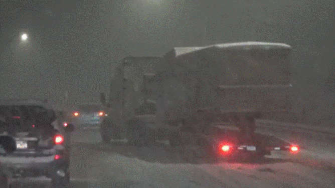 It appeared that drivers who thought they were driving slowly enough fishtailed and then pulled to the side of the road. In his video of the storm, two cars were seen colliding in what seemed like slow-motion.