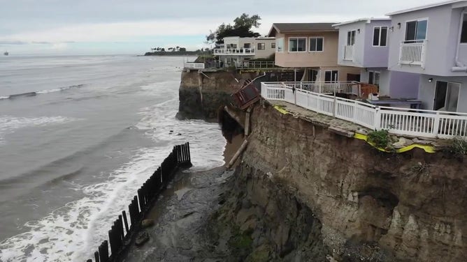 Drone video shows California cliff eroding after atmospheric river pounds Santa Barbara area