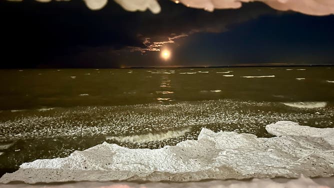 The scene revealed lake shores that were frozen along Lake Erie. The drone even captured some ice pancakes on the water's surface.