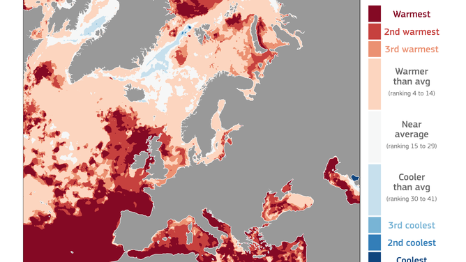 In 2023, Europe tied 2020 for its warmest year on record. The most above-average temperatures were in the European Arctic, and the continent's sea surface temperatures were the warmest on record. In June, a marine heat wave was classified as "extreme" and "beyond extreme" in some areas around the Atlantic west of Ireland and around the U.K.