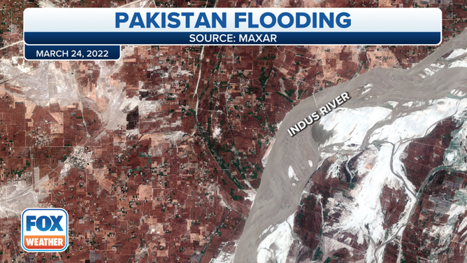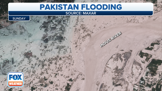 Satellites were able to document the historic flood from space. Images provided by Maxar and NASA show just how enormous this year's monsoon flooding has been.