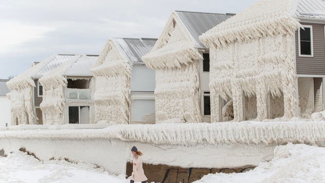 Several lakefront homes turned into ice-covered testaments to the fury of last week's blizzard along Lake Erie. (Video: @withdupidWEATHER TRAKER /TMX)