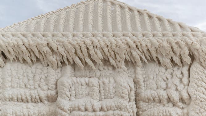 Lakefront neighborhood transforms into surreal frozen wonderland after blizzard's onslaught