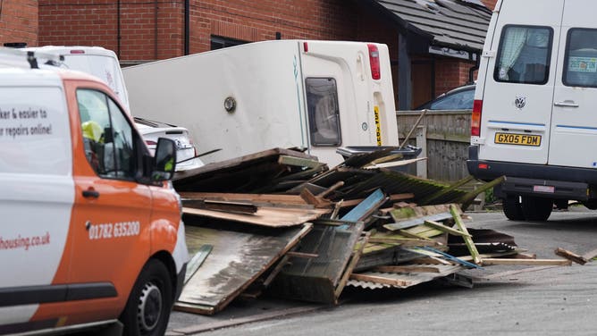 It was an early morning wakeup call for those in Staffordshire village. Hemmings, whose camera caught the violent winds just before 6:30 a.m. local time, told Storyful that the "freak weather event" caused "carnage and destruction all along his street."