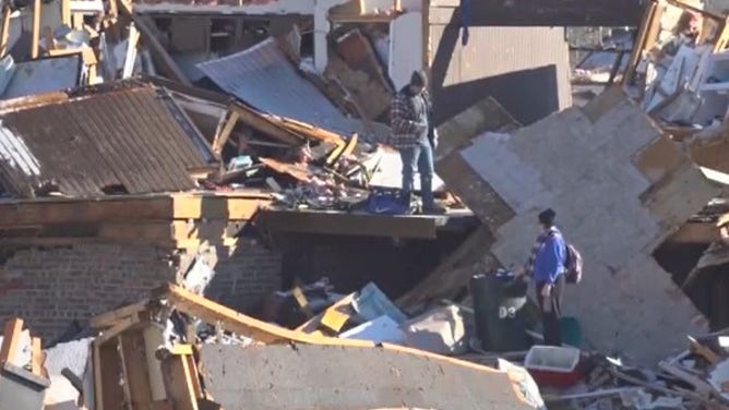 DAWSON SPRINGS, Ky. -- Search crews continued to pore over the destruction left behind by a massive tornado that tore through western Kentucky Friday night, leaving several neighborhoods in ruin.