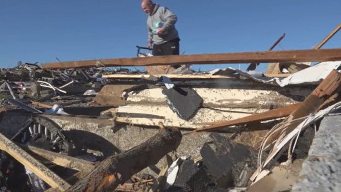 Forty hours after the deadly tornadoes struck, Dawson Springs scrambles dig out of debris.