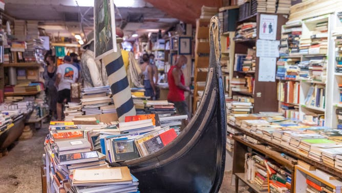The city built elevated sidewalks to take pedestrians through tourist areas during floods. Shops sell rubber boots and knee-high plastic slippers for wading. One bookstore, named after the high tide flooding, famously keeps books for sale in bathtubs, plastic bins and even a full-size gondola.